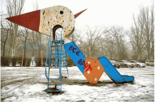 LUANNE: He’s gone out with a spray can. He’s painted our initials all over town. BPYT all over fences and the playground equipment, even on the back of the church.
