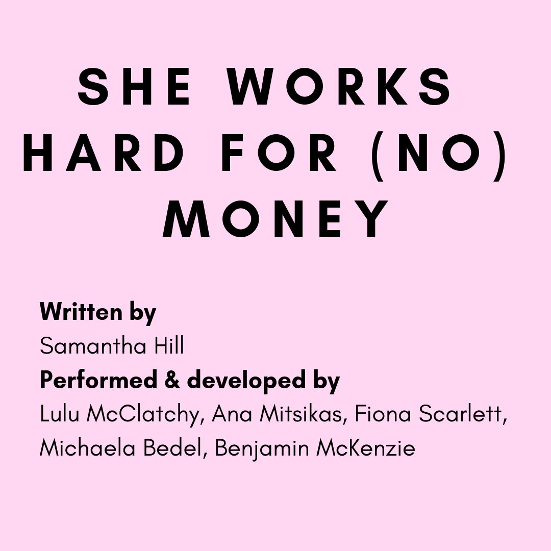‘She works hard for (no) money’ was written in 2018, and underwent development through Small and Loud at the Arts Centre, Melbourne, in 2019. It is currently being redrafted.